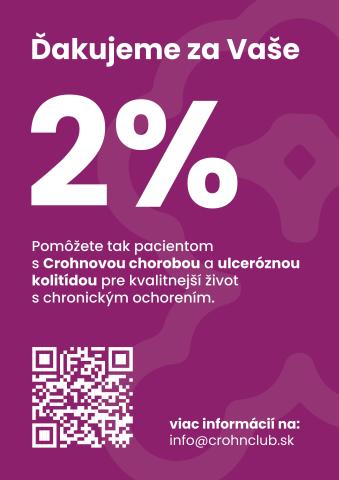 Budeme Vám vďační, ak sa rozhodnete darovať nám 2% a pomôžete pacientom s Crohnovou chorobou a ulceróznou kolitídou. Tlačivá nájdete tu: Vyhlásenie a Daňové priznanie typ A.